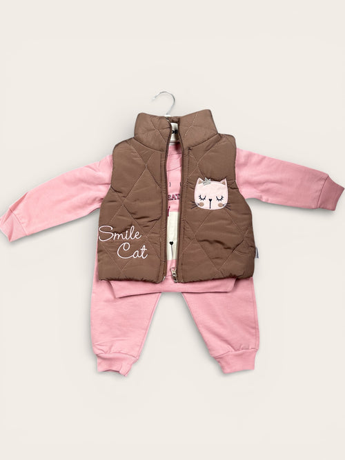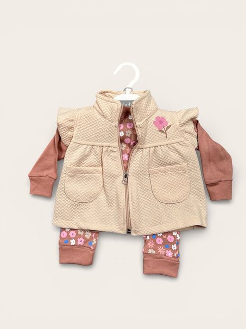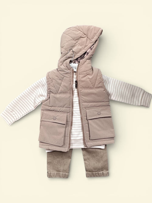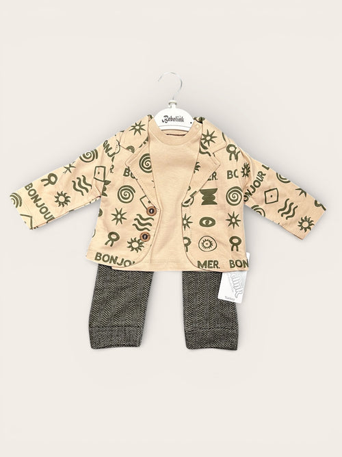 Baby 3-piece set printed blazer-jacket, neutral t-shirt, comfortable textured pants
